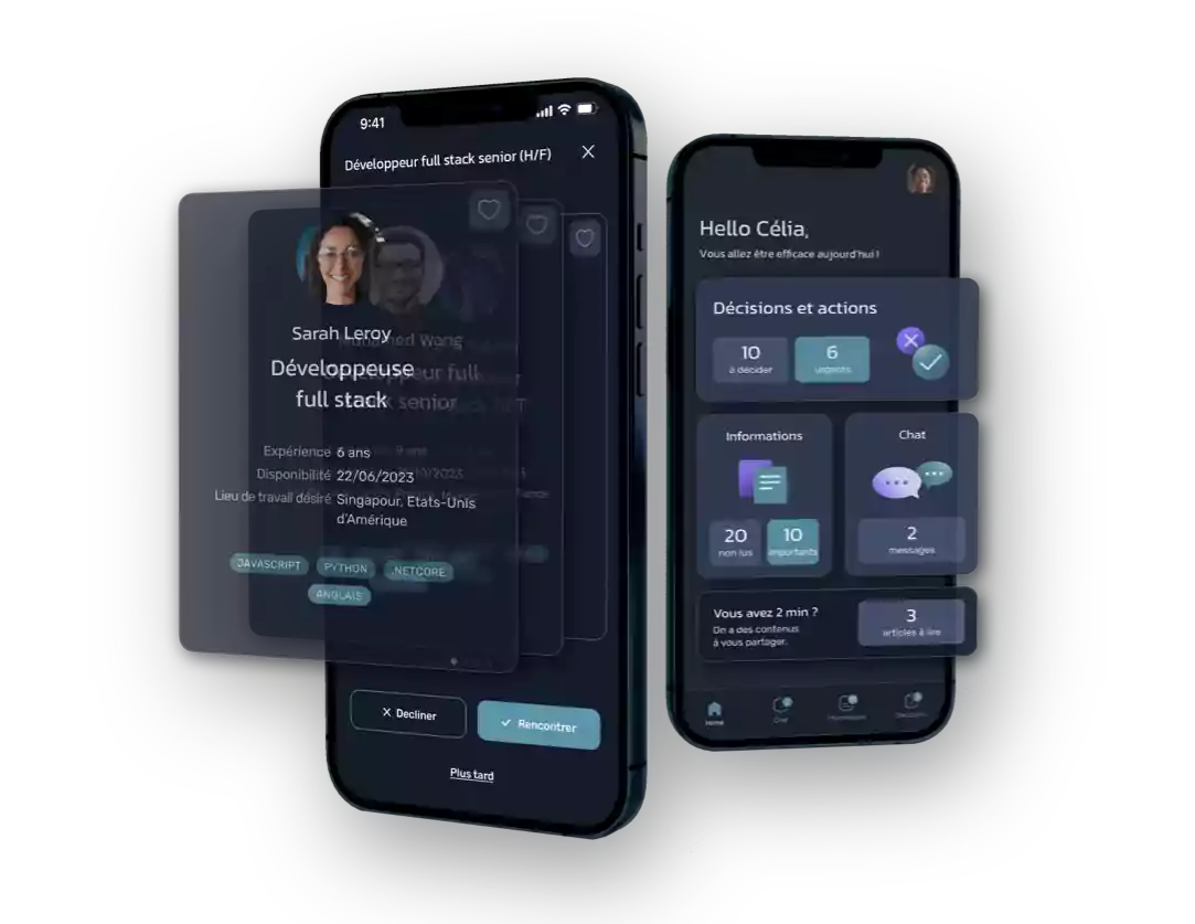 En un clic, prenez rapidement une décision et continuez le processus de recrutement avec les Talents qui vous intéressent.