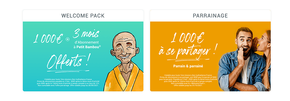 *Rétrocession de 1000€ HT de CA lors de la première mission avec Izyfreelance payable en 2 fois.